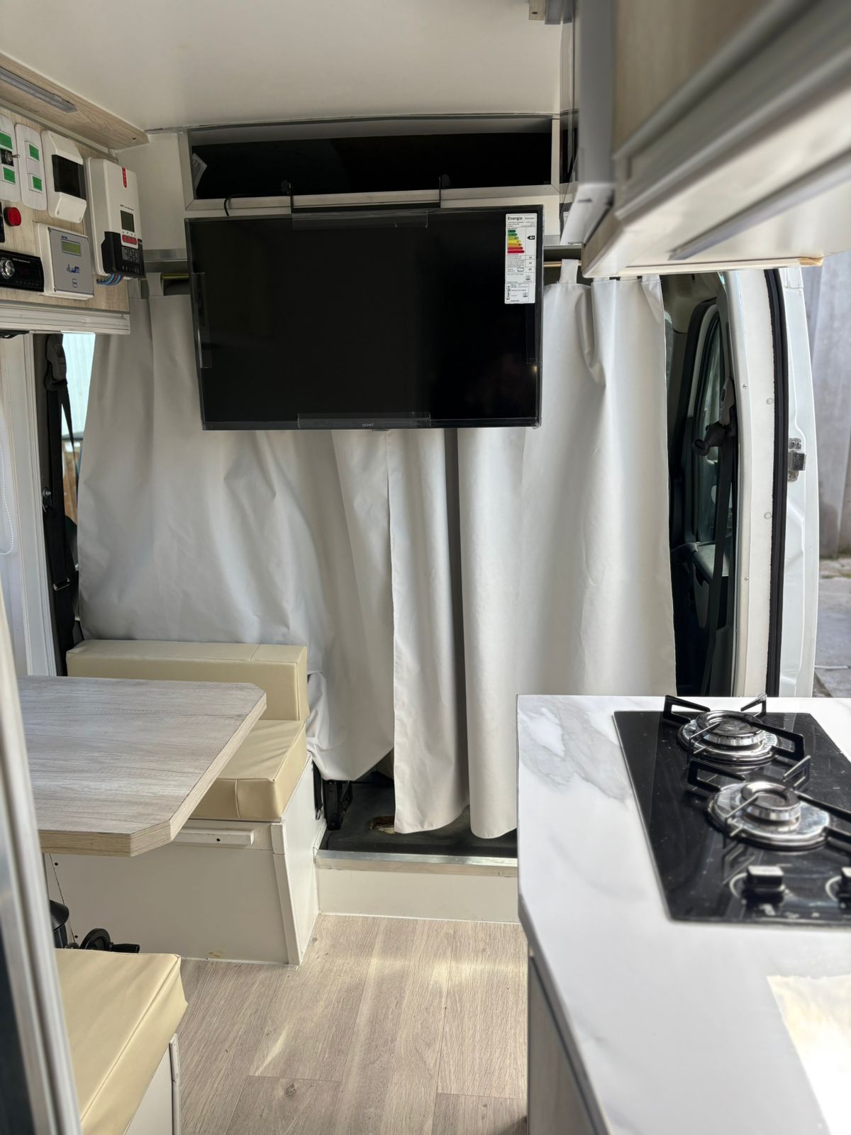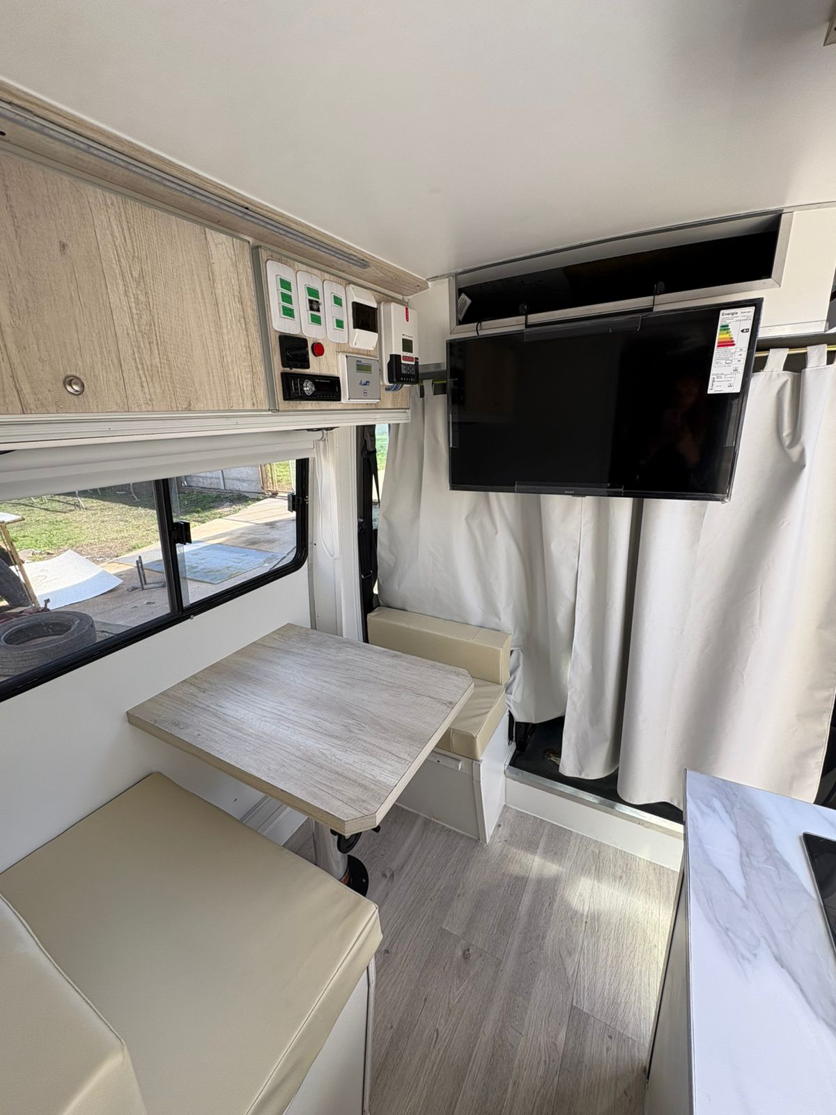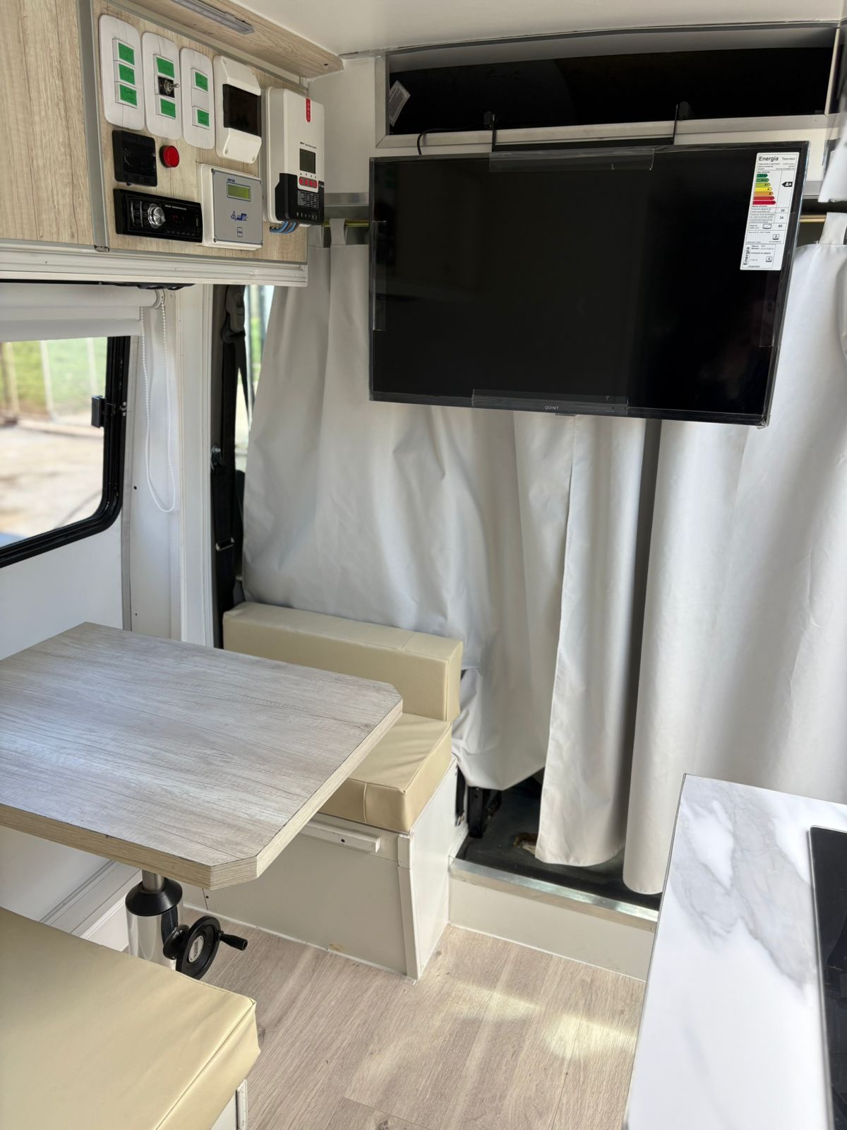 Ventanas corredizas con mosquetero y cortina blackout